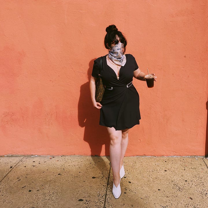 A week or so before I moved to Brooklyn, I went to an influencer event with my best friend. We got tipsy on “Spaghetts*,” then wandered over to the Rail Park to reminisce about my time in Philadelphia and take some #OOTDs. (You may now know them as “fit pics.”) I wore a horrendous patchwork print dress, petal pink lipstick that was very much not my season, my still-beloved orange velvet Reike Nen pumps (purchased secondhand from a closet sale hosted by the one and only Aimee Song), and a cream Jacquemus bag that I’d foolishly purchased before parting ways with the requisite $15K you must sacrifice to the broker gods in order to secure an apartment in New York City. (Yes, even Bedstuy.)